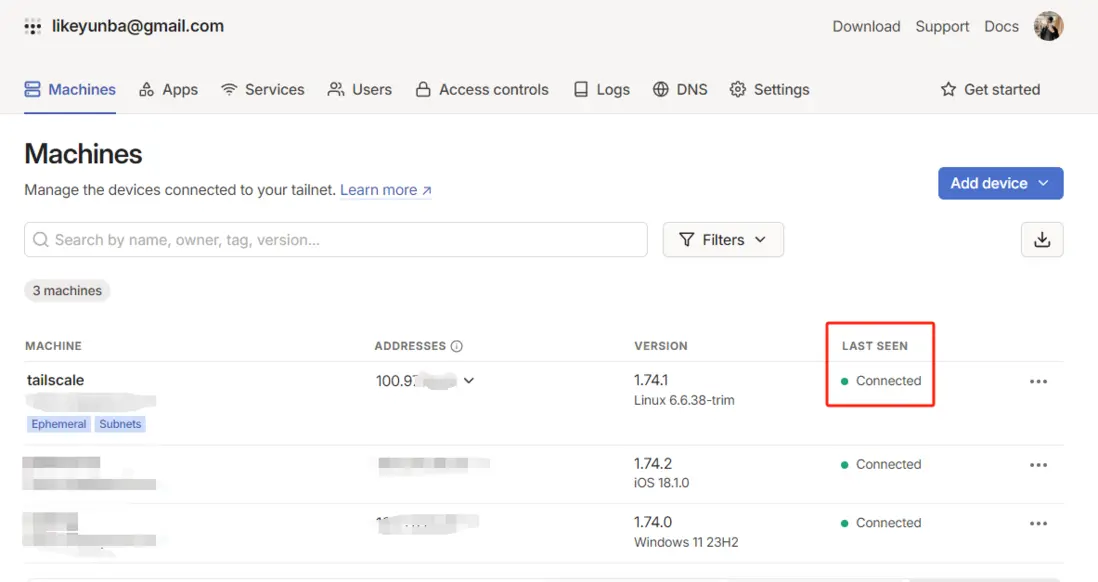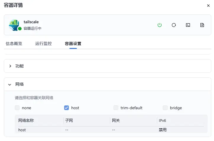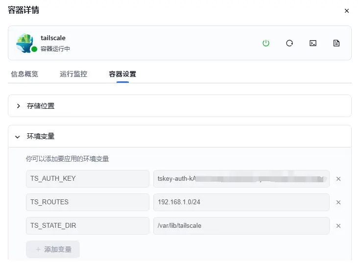 到这里,基本就可以确定下来,启动容器,再去 Tailscale 查看连接状态。