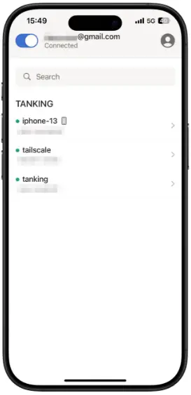 例如你的是 iPhone 手机,那么需要在 AppStore 下载 Tailscale App 并且登录 Tailscale 后即可实现与飞牛OS的 Tailscale 实现组网。