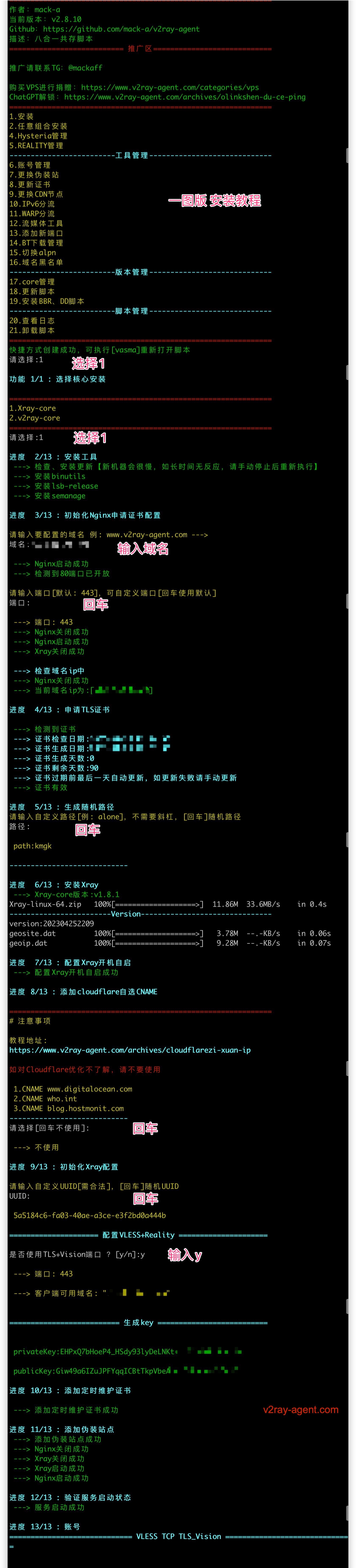 wget -P /root -N --no-check-certificate "https://raw.githubusercontent.com/mack-a/v2ray-agent/master/install.sh" && chmod 700 /root/install.sh && /root/install.sh5、图片指导